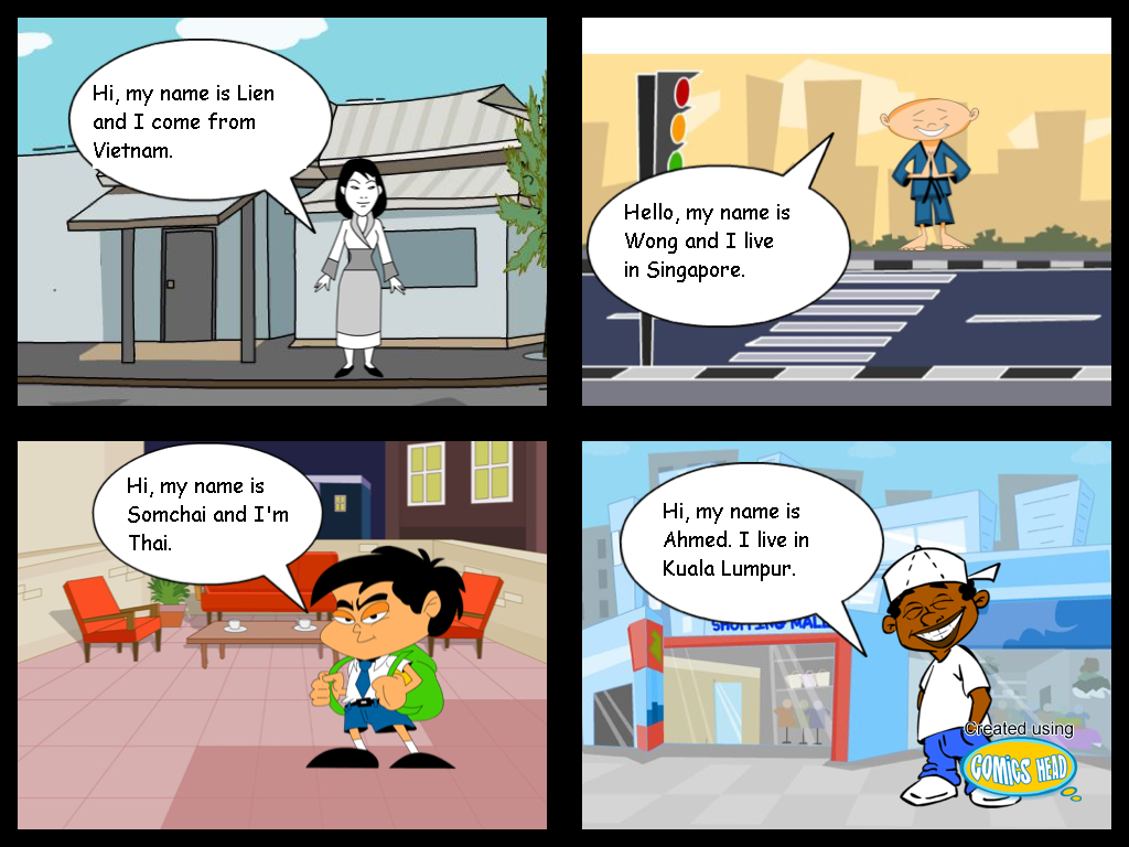 Assign students ASEAN identities and then place them in situations that tourist may find themselves in – buying postcards, asking directions, ordering food, meeting new friends etc..